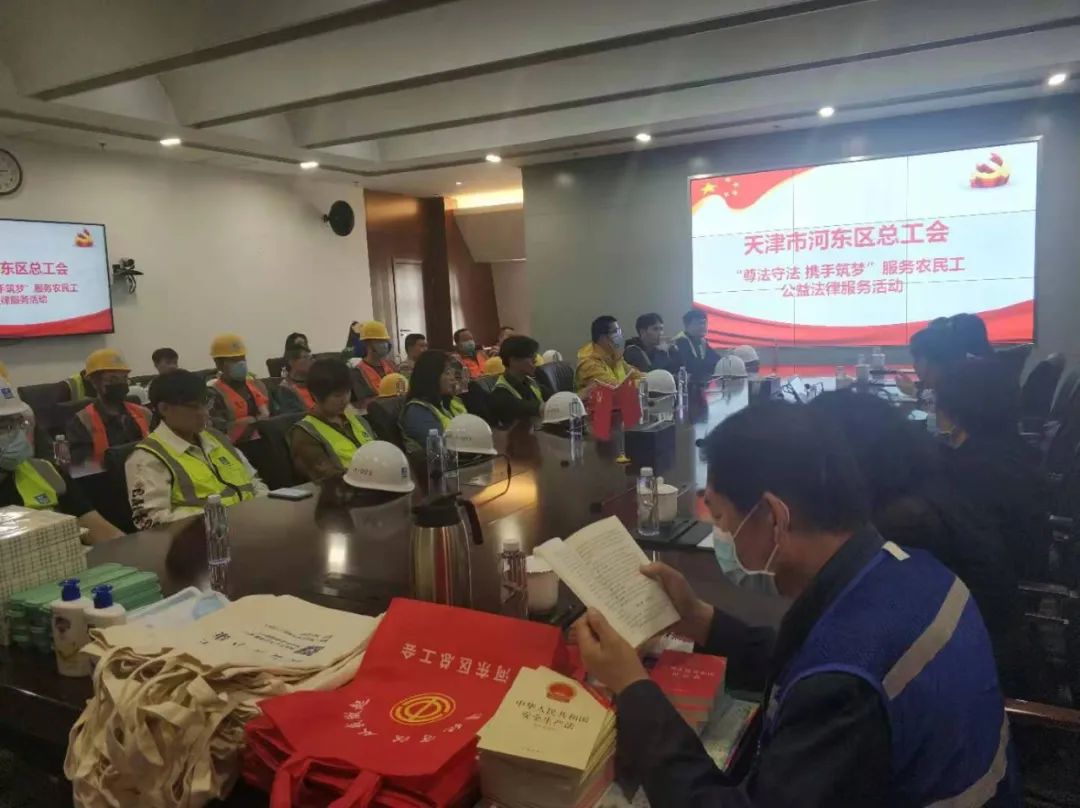 活动中,区总工会负责同志为工作在一线的农民工发放了相关法律书籍及宣传资料,由负责律师重点讲解了《宪法》《劳动法》《民法典》等涉及农民工切身权益的法律法规政策,培训宣传了《天津市工会劳动法律监督条例》的重点内容,并对农民工提出的相关法律问题进行了有针对性的解答。此次活动的开展营造了尊法、学法、守法、用法的良好氛围,既有效的引导了农民工们提升法律意识,增强法治素养,又提高了农民工依法维护自身合法权益的能力。