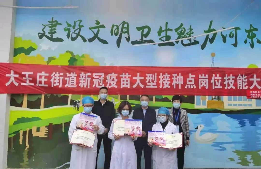 4月25日,河东区大王庄街道总工会开展了全区首个新冠疫苗接种岗位技能大比武,锤炼疫苗接种全流程服务能力——种“苗”练兵筑牢免疫屏障。