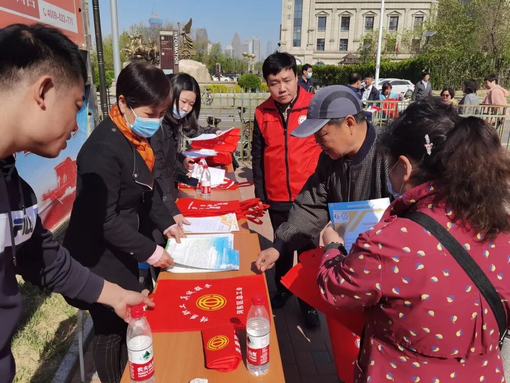 在活动开始前,河东区总工会劳模志愿者服务队以及老百姓大药房志愿队、卫华老板电器志愿队在河滨公园举行了一场迎接建党100周年志愿服务活动。为过往的职工和群众送去法律援助、大病关爱、免费测血压,血糖等活动。