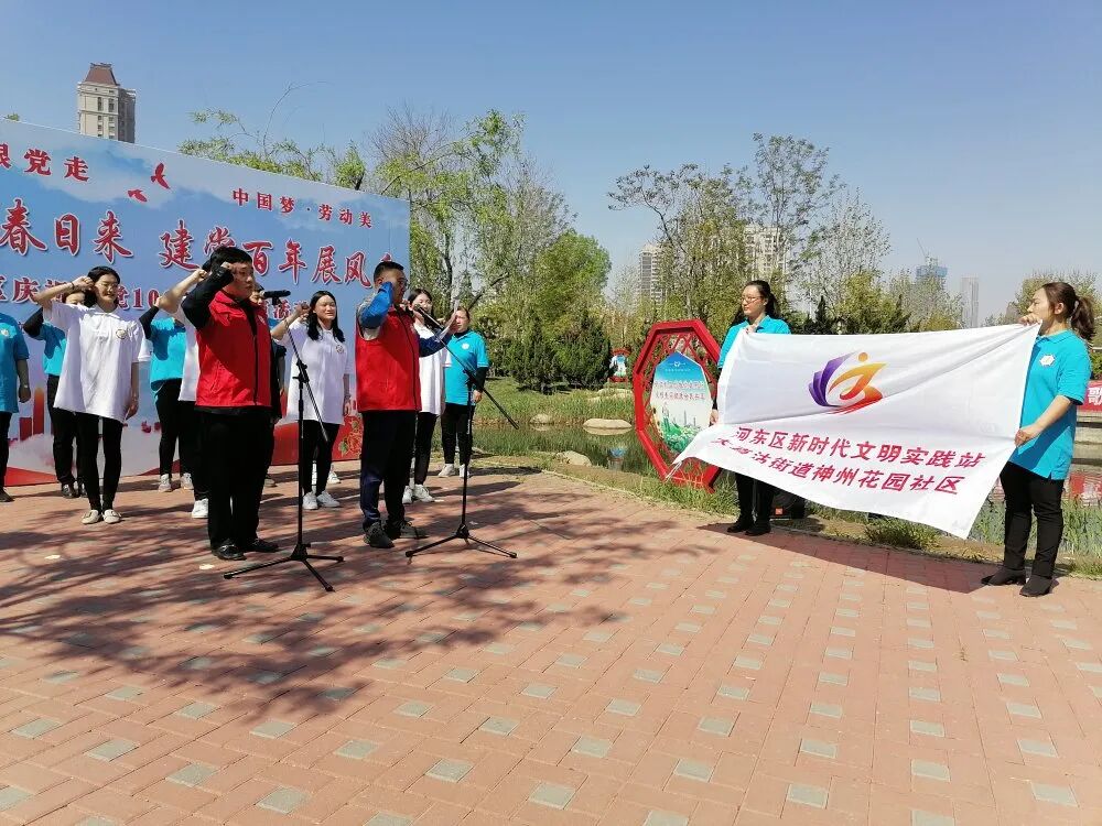 4月18日,在海河东畔河滨公园,大直沽街道神州花园社区联合河东区总工会开展“永远跟党走”——河东区庆祝中国共产党成立100周年展演活动。进一步引导全区广大职工群众忆党史、颂党恩,知史爱党,坚定不移听党话,矢志不渝跟党走。把感恩党、感恩新时代的真挚情感转化为奋斗建功新时代的实际行动,以优异的成绩迎接建党100周年。