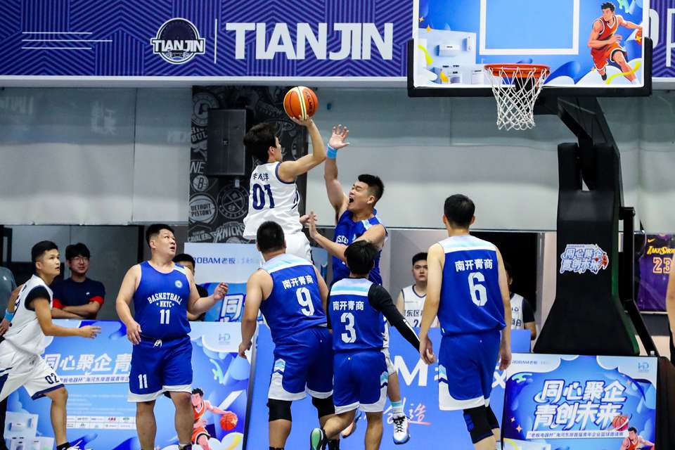 开幕式上,12支参赛队伍依次亮相。随后河东区青商会、南开区青商会两支队伍进行了首场比赛。河东区青商会队队员杨文成说:“我们队里都是来自不同企业的青年伙伴,平时工作忙碌,这次比赛不仅让大家释放了压力,更让我们在训练和磨合中增进了彼此的了解。接下来的比赛,我们会全力以赴,既要展现河东区青商会的竞技水平,更要通过篮球传递企业青年的协作精神,希望能和其他队伍互相学习,一起为‘青创未来’的目标加油。”