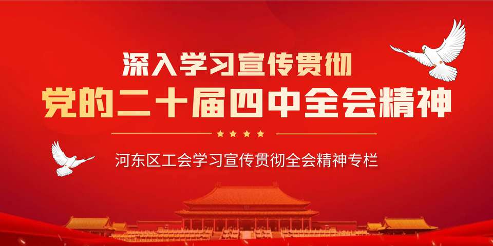 【开栏语】 金风送爽,硕果盈枝;思想领航,奋进扬帆。党的二十届四中全会站在新的历史起点,擘画了“十五五”发展的宏伟蓝图,吹响了接续推进中国式现代化建设的奋进号角。为深入学习贯彻党的二十届四中全会精神,进一步弘扬劳模精神、劳动精神、工匠精神,团结引领广大职工坚定不移听党话、矢志不渝跟党走,即日起,河东区总工会微信公众号、视频号,官方网站特开设“河东区工会学习宣传贯彻党的二十届四中全会精神”学习专栏,邀请河东区广大工会组织和干部职工用真诚的语言分享学习感悟,以扎实的行动回应工会使命,当好桥梁纽带,为河东区高质量发展贡献工会力量!