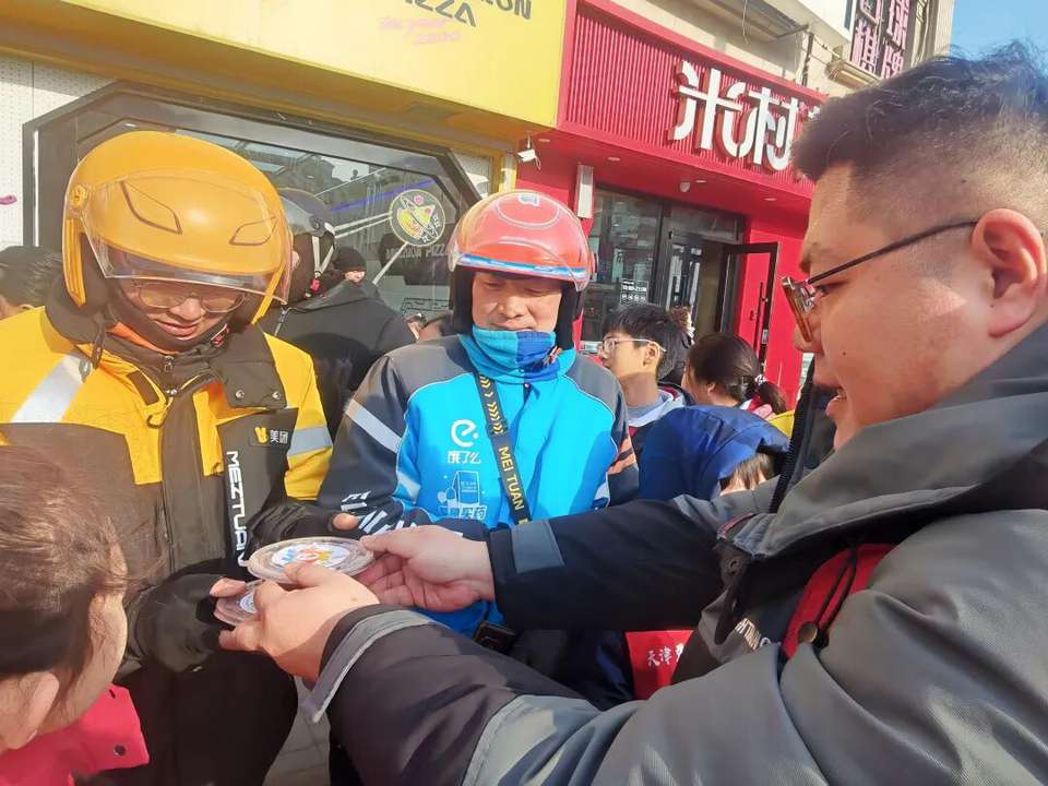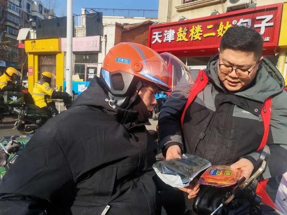驿站工作人员、志愿者带领互助道小学的学生们走到外卖骑手、快递员聚集的中心南道,为他们送上一碗碗热气腾腾的腊八粥与暖心礼包,外卖骑手和快递员们脸上洋溢着欣慰的笑容,纷纷表示“天这么冷,喝上一碗热粥,戴上厚实的手套,干活都更有劲儿了!”。(通讯员:仇海凤)