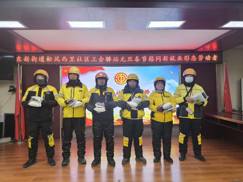 东新街道总工会积极响应上级工会号召,启动春节送温暖行动,依托松风西里社区党群服务中心工会驿站为“两司两员”群体送上手套、围脖、护手霜、暖贴四件“暖心好物”,为“两司两员”群体送上冬日关怀。