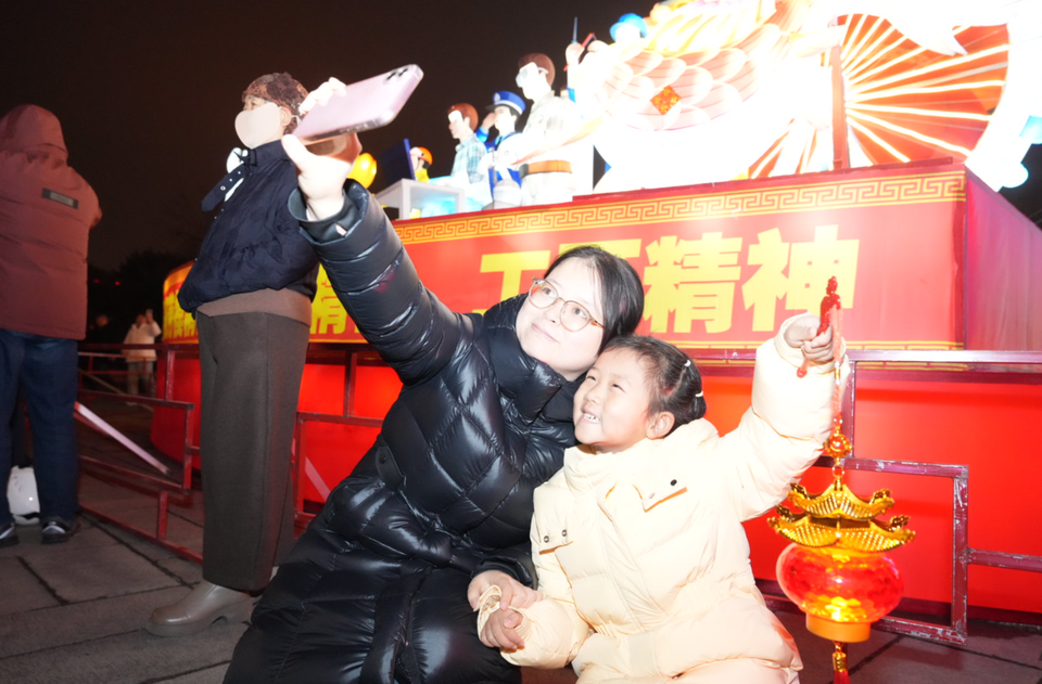 流光溢彩的灯组一亮相,就成了小朋友们的打卡热门。“妈妈,这个灯最好看,快帮我多拍几张!”稚嫩的童声在人群中格外清脆。不远处,仲女士和丈夫连忙举起手机,不停变换角度,为孩子定格欢乐瞬间。3岁的小家伙是第一次逛灯会,一路的流光溢彩早已让他目不暇接、兴奋不已,走到这座动感十足的灯组前更是挪不开脚步。看着孩子欢呼雀跃的模样,仲女士脸上也扬起了温柔的笑意:“我们住得挺远,听说二宫有灯会,特意带孩子过来。看到他这么开心,这一趟来得太值了!”