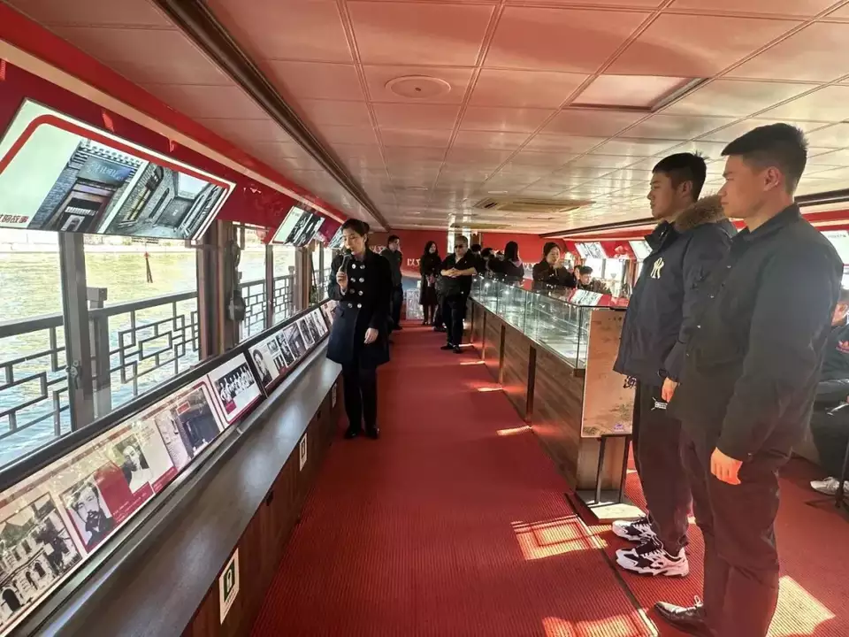 为深入贯彻落实“中国工人大思政课”的“讲什么、谁来讲、向谁讲、怎么讲”工作要求,传承红色基因,重温红色记忆,沉浸式追寻天津百年红色足迹。近日,鲁山道街道总工会组织干部职工登上游船,一同参观“海河上的天津红色记忆展”。