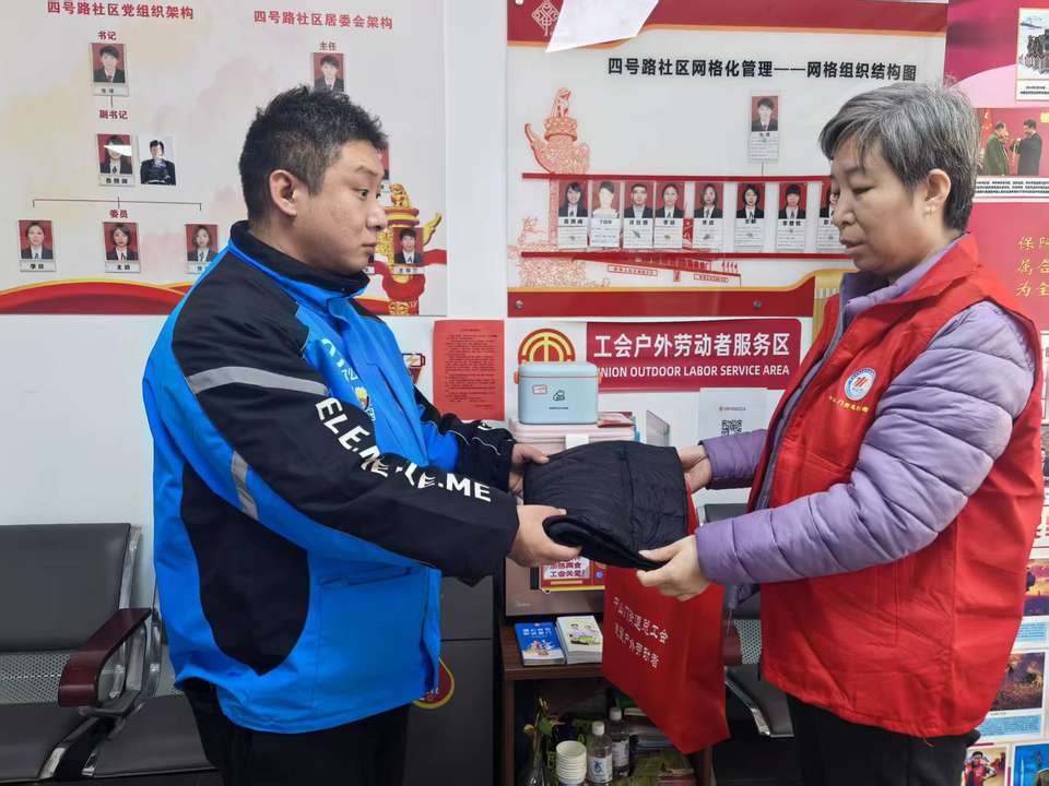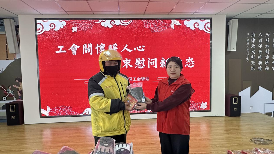 富民路街道总工会积极响应上级工会号召,精心组织开展“2026年元旦春节期间新就业形态劳动者温暖行动”,为“两司两员”群体送上冬日关怀。街道总工会为新就业形态劳动者发放羽绒坎肩、护手霜、暖宝宝、手套、围脖等物品,为他们抵御严寒提供有力保障。